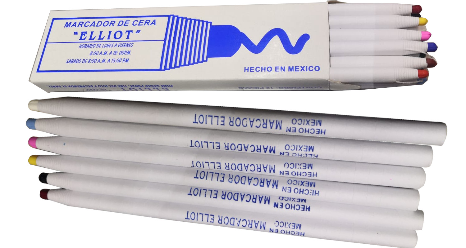 Marcadores: Marcador de cera empleado para marcar tela. A la venta por una sola pieza o por caja con 12 piezas. |