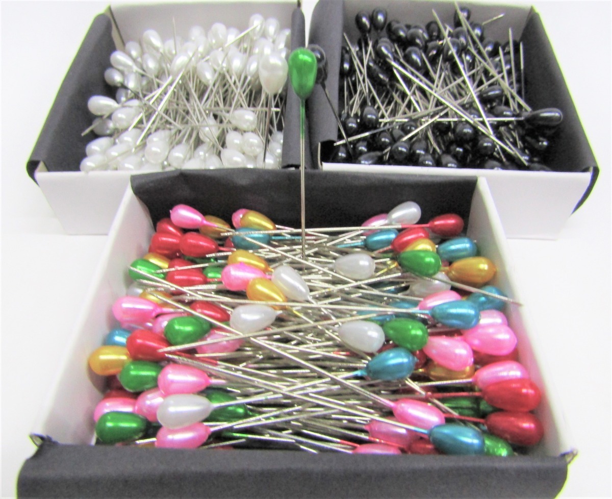 Alfiler de fistol: Alfiler con cabeza de gota de plástico, de un mayor largo. Ideal para modistas o cierto tipo de manualidades. Presentación: Caja con 144 piezas. En colores: